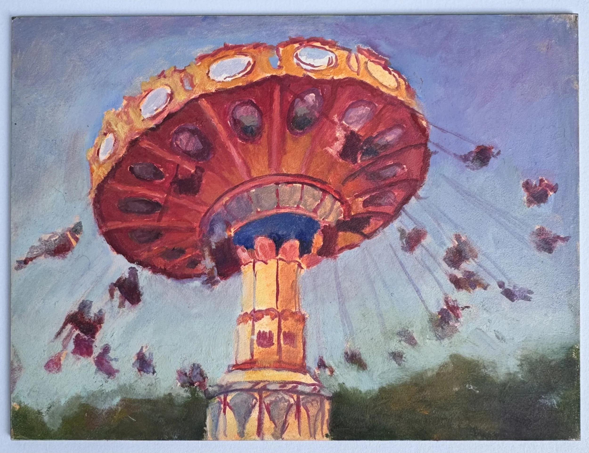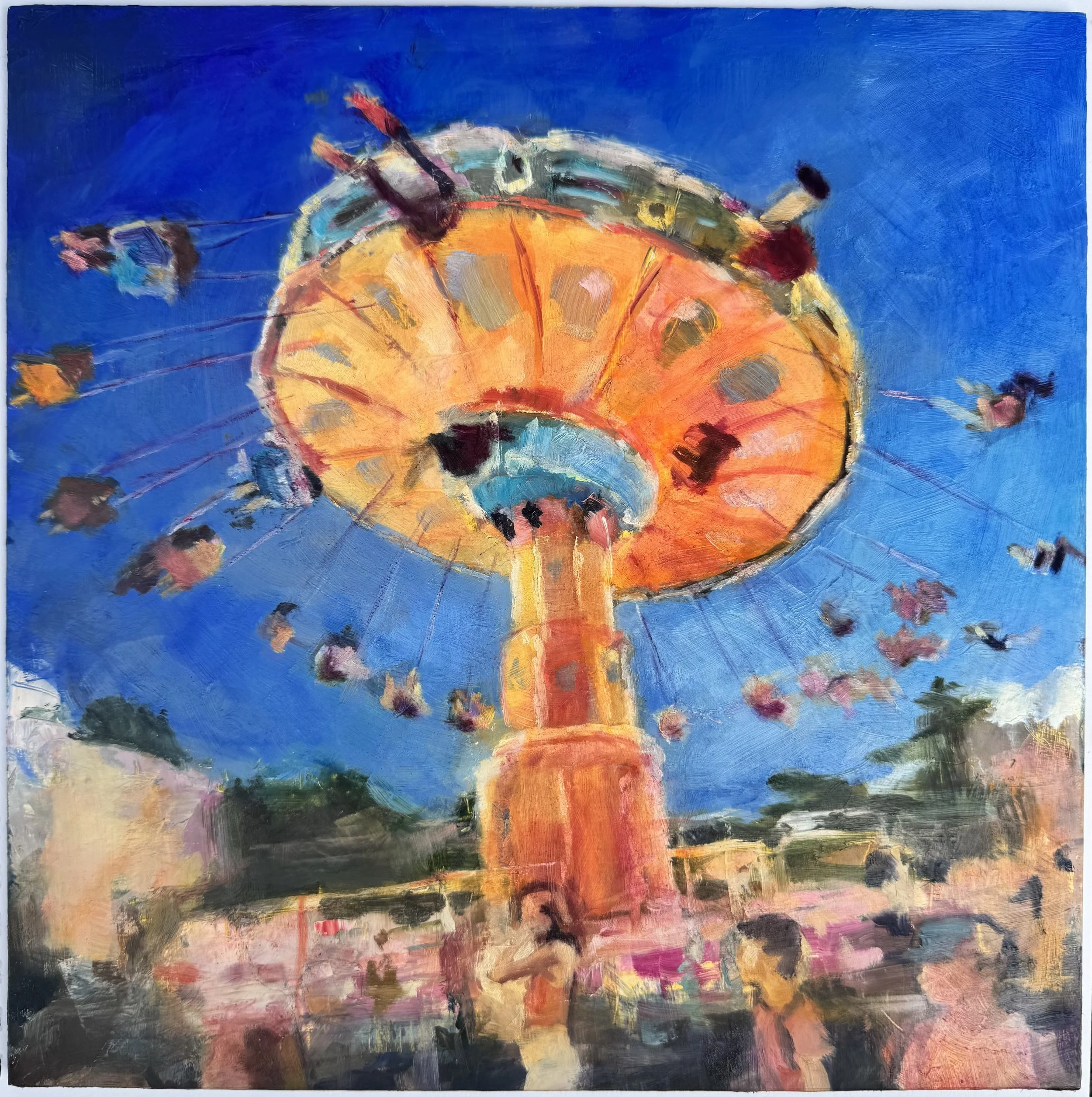 This summer I’ve been traveling with the Fireman’s Fair, painting on location in towns across New Jersey. These fairs are more than rides and lights—they’re secular community gatherings where people of all ages, backgrounds, and beliefs come together for joy and connection.